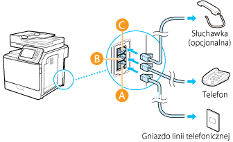 W przypadku podłączania zewnętrznego aparatu telefonicznego z funkcją faksu ustaw telefon na ręczne odbieranie faksów.