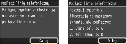 Po podłączeniu linii telefonicznej dotknij przycisk <Dalej>.