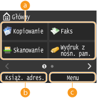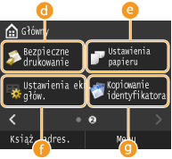 na panelu sterowania. Na ekranie Menu główne widoczne są przyciski umożliwiające uzyskanie dostępu do funkcji. Przyciski te można dodawać/usuwać, a także zmieniać ich kolejność — tak, aby korzystanie z nich było jak najłatwiejsze dla użytkownika.