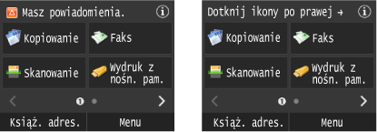 ![]() Gdy wyświetlany jest komunikat <Masz powiadomienia.> lub <Dotknij ikony po prawej ->>