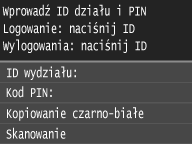 Dotknij opcję <ID wydziału> (albo opcję <ID menedżera systemu>).