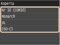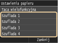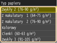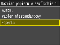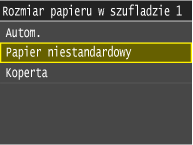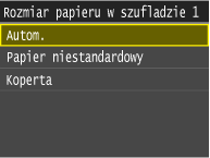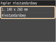 W przypadku rodzaju papieru, który nie jest automatycznie rozpoznawany, np. LGL albo EXEC, należy go określić, korzystając najpierw z opcji <Lista 1 rozmiarów papieru do rozpoznania> albo <Lista 2 rozmiarów papieru do rozpoznania>.