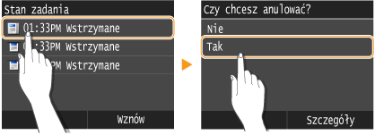 Dotknij kopiowany dokument wyświetlany na ekranie <Stan zad. kopiowania/drukowania>