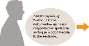 Należy przejść do menu <Ulubione ustawienia> i zarejestrować kombinację funkcji <Dwustronny> oraz funkcji <Sortowanie> ustawionej w pozycji <Włącz>. Ułatwi to korzystanie z tej kombinacji ustawień, gdy tylko będzie taka potrzeba. Zapisywanie najczęściej używanych ustawień kopiowania