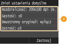 Ustawienia domyślne są ustawieniami wyświetlanymi po każdym włączeniu urządzenia lub naciśnięciu przycisku