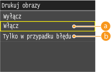 <Menu>  <Ustawienia zarządzania systemem>  <Zapisz/drukuj podczas przekaz.>  <Drukuj obrazy>  <Włącz> lub <Tylko w przypadku błędu>
