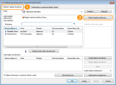 W tym rozdziale przedstawiono instrukcje zapisywania odbiorców w książce adresowej do wysyłania faksów z komputera. Dostępna jest funkcja tworzenia grupy odbiorców (Wybieranie grupowe) z poszczególnych odbiorców zapisanych w książce adresowej. Funkcja ta jest przydatna w przypadku wysyłania do wielu odbiorców jednocześnie.