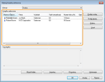 Dostęp do książki adresowej nie jest możliwy w przypadku braku uprawnień dostępu do folderu, w którym zapisano książkę adresową. Należy zalogować się jako użytkownik z uprawnieniami dostępu do tego folderu lub zmienić lokalizację zapisu książki adresowej.