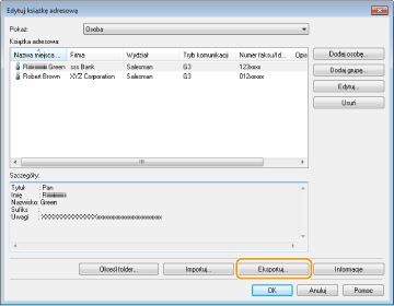 W oknie dialogowym [Edytuj książkę adresową] kliknij przycisk [Eksportuj].