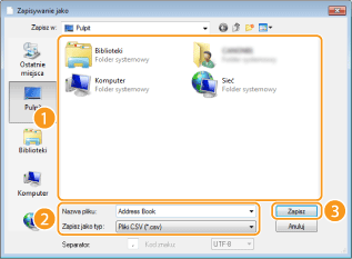 Zapisz plik książki adresowej w folderze, do którego posiadasz uprawnienia zapisu, na przykład [My Documents] (Moje dokumenty).