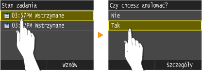 Dotknij dokument wyświetlany na ekranie <Stan zad. kopiowania/drukowania>