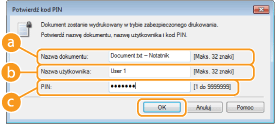 Sprawdź nazwę dokumentu, nazwę użytkownika oraz PIN i kliknij przycisk [OK].
