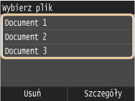 Jeśli w pamięci urządzenia przechowywane są dokumenty chronione utworzone przez kilku użytkowników, wyświetlony zostaje ekran <Wybierz użytkownika>, a następnie <Wybierz plik>. Dotknij swoją nazwę użytkownika.