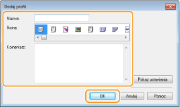 Wprowadź nazwę profilu w polu [Nazwa], wybierz ikonę, po czym kliknij przycisk [OK].