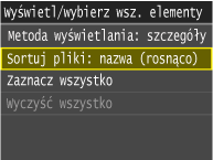 Jeśli dotknięta zostanie opcja <Data/godz. (rosnąco)> lub <Data/godz. (malejąco)>, pliki będą sortowane na podstawie dat i czasu.