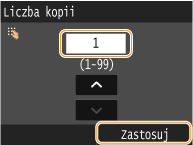 Określ liczbę kopii jako wartość z zakresu od 1 do 99. Liczbę wprowadź za pomocą przycisków