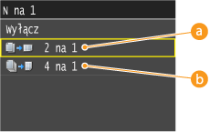 Na jednym arkuszu można wydrukować dwa lub cztery obrazy. Dotknij opcję <2 na 1> lub <4 na 1>.