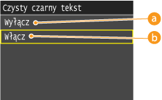 Gdy opcja <Wł.> została wybrana jako wartość ustawienia <Czysty czarny tekst>.
