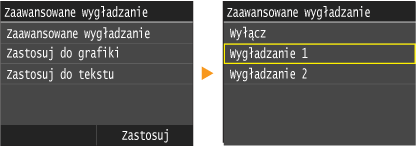 Ustawienia opcji <Zastosuj do grafiki> i <Zastosuj do tekstu> widoczne na wyświetlaczu zostaną zastosowane, tylko jeżeli dla ustawienia Zaawansowane wygładzanie w sterowniku drukarki wybrano opcję [Ustawienia domyślne drukarki].