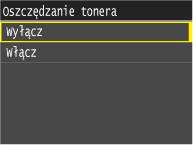 To ustawienie umożliwia ustawienie funkcji Oszczędność zużycia tonera. Oszczędność zużycia tonera wiąże się z mniejszym zużyciem tonera podczas drukowania dokumentów oraz z wydłużeniem jego żywotności.