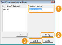 Wprowadź nazwę w pole [Nazwa ustawienia] i kliknij kolejno [Dodaj]