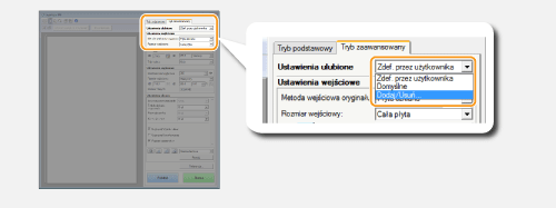 Należy wyświetlić podgląd obrazu i wybrać zarejestrowane ustawienie z listy rozwijanej.