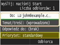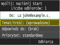 Informacje dotyczące łatwego wybierania odbiorców przy użyciu innych metod, np. książki adresowej, znajdują się w sekcji Wybieranie odbiorców (wiadomość e-mail/folder udostępniony/serwer plików).