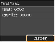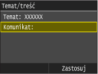 Adres zwrotny nie jest ustawiony domyślnie. Aby wysłać powiadomienie do odbiorcy określonego jako adres zwrotny, należy wybrać odpowiedni adres spośród tych zapisanych w książce adresowej. Jeśli w książce adresowej nie ma zapisanych odbiorców, zapoznaj się z treścią rozdziału Rejestracja w książce adresowej.