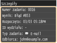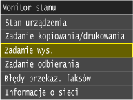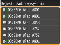 Gdy dla opcji <Wyświetlanie rejestru zadań> wybrano ustawienie <Wyłącz>, dzienniki wysłanych dokumentów są niedostępne.