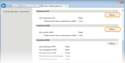 Zaznaczenie tego pola wyboru umożliwia wydruk za pomocą protokołu LPD. Jeśli drukowanie za pomocą protokołu LPD nie jest używane, należy usunąć zaznaczenie tego pola wyboru. [Użyj wydruku RAW]