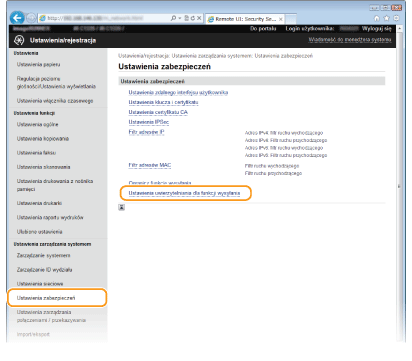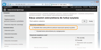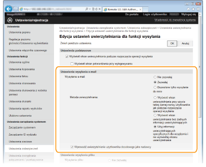 [Ustawienia uwierzytelniania dla funkcji wysyłania].