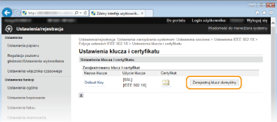 Kliknij opcję [Zarejestruj klucz domyślny] po prawej stronie pary kluczy, której chcesz użyć do uwierzytelnienia klienta.
