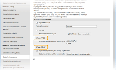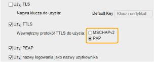 Zaznacz pole wyboru [Użyj TTLS] lub [Użyj PEAP].