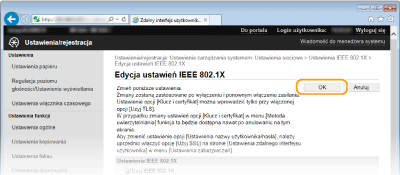Uwierzytelnianie zgodne ze standardem IEEE 802.1X można włączyć lub wyłączyć za pomocą przycisku <Menu>. Ustawienia IEEE 802.1X