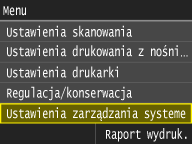 Ustawienie to pozwala na import lub eksport ustawień i danych z książki adresowej. Wybór opcji <Import> powoduje import ustawień i danych z książki adresowej zapisanych na urządzeniu pamięci USB. Po wybraniu opcji <Eksport> ustawienia i dane z książki adresowej zostają wyeksportowane do urządzenia pamięci USB.