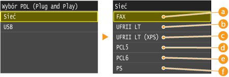 Ustawienie umożliwiające wybór języka opisu strony, dzięki któremu po podłączeniu urządzenia do komputera za pomocą technologii Plug and Play jest ono rozpoznawane jako drukarka obsługująca dany język.