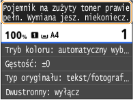 <Prawie pełny>: Pojemnik na zużyty toner jest już prawie pełny. Zalecana jest jego wymiana.