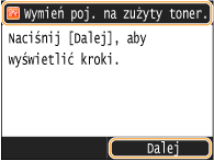 <OK>: Nie ma potrzeby wymiany pojemnika na zużyty toner.