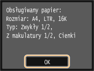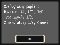 Upewnij się, że na ekranie jest wyświetlany odpowiedni format i rodzaj papieru, a następnie dotknij przycisk <OK>.