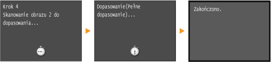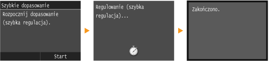 Ta regulacja polega na utrzymaniu zoptymalizowanego stanu uzyskanego w wyniku operacji <Pełne dopasowanie>. Tego typu regulacji nie można wykonać jednocześnie z niektórymi funkcjami na przykład skanowaniem lub drukowaniem. Jeśli wynik tej regulacji nie jest zadowalający, należy wykonać operację <Pełne dopasowanie>. Regulacja tego typu może być wykonywana automatycznie po wymianie zasobnika z tonerem.