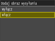 Jeśli dla opcji <Włącz> wybrana zostanie wartość <Tylko w przypadku błędu> albo <Raport wyników wysyłania faksów>, istnieje możliwość umieszczenia części faksu w raporcie. Nadaj ustawieniu <Dodaj obraz wysyłania> wartość <Włącz>.