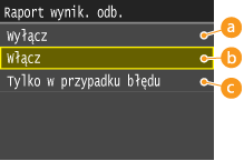 Wybierz, aby Raport wyników RX był drukowany, tylko jeśli wystąpi błąd odbierania.