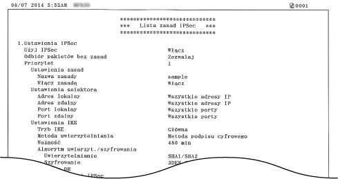 Listę nazw zasad oraz ustawienia IPSec zarejestrowane w urządzeniu można sprawdzić, drukując listę zasad IPSec.