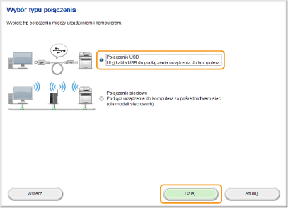 Wybierz [Połączenie USB], a następnie kliknij przycisk [Dalej].