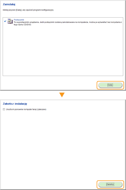 Odznacz wszystkie pola wyboru z wyjątkiem [Podręczniki] i kliknij przycisk [Zainstaluj].