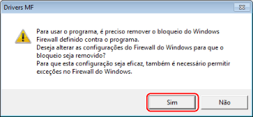 Se a seguinte caixa de diálogo for exibida durante a instalação, selecione [Sim]. O bloqueio do Firewall do Windows é removido e você pode proceder com a instalação.