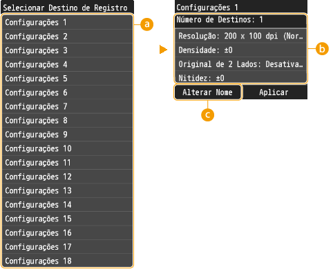 <Configurações Favoritas> toque na definição.As definições registadas permanecem guardadas mesmo quando a máquina é desligada.