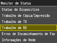 Permite imprimir relatórios de Resultado RX sempre que são guardados documentos na memória. Para imprimir relatórios, toque em <Ativado>. Também é necessário definir <Relatório de Resultado RX> como <Ativado>.