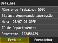 Pode ver informações detalhadas relativas aos documentos guardados na memória, incluindo números de fax de remetentes e o número de páginas enviadas, e depois apagar documentos desnecessários.