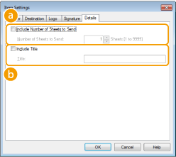 Selecione esta caixa de verificação se pretender incluir o número de folhas que vai enviar na folha de rosto e especifique o número de folhas em [Number of Sheets to Send] (Número de folhas a enviar). O número de folhas a enviar não é contado automaticamente. O valor especificado aqui é incluído na folha de rosto.